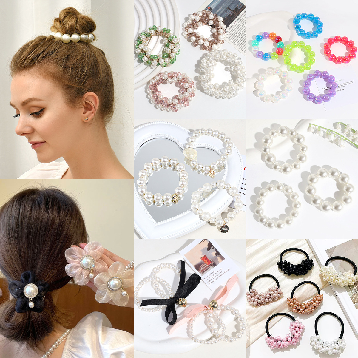 Ikat rambut mutiara buatan untuk wanita, tali karet rambut kepala super peri gaya Korea musim gugur dan musim dingin