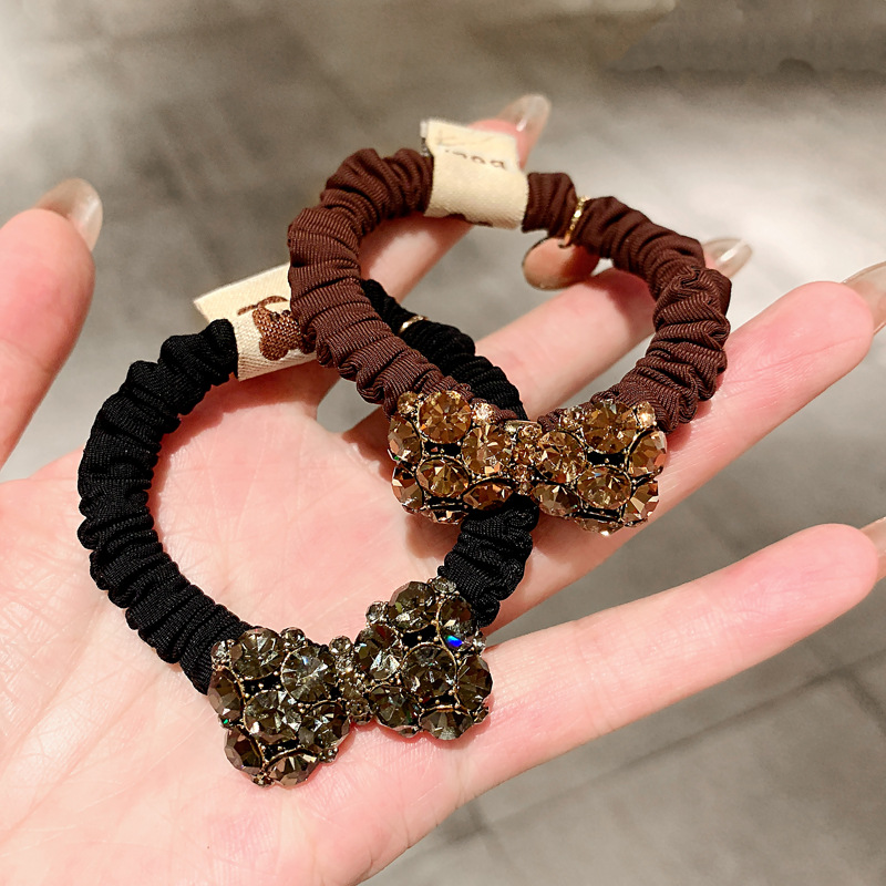 Bando rambut usus kecil wanita, aksesori rambut kepala bola ekor kuda tali rambut berlian Ceko elegan Semua cocok gaya Korea selebriti baru