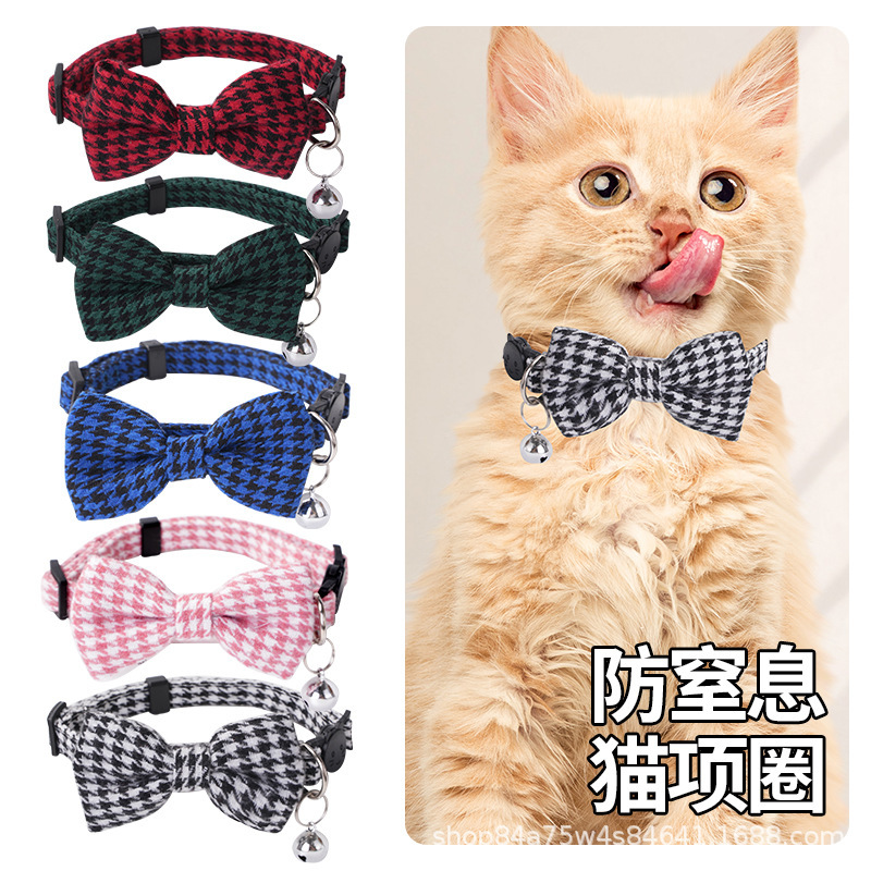 跨境宠物项圈千鸟格子蝴蝶结猫项圈狗项圈插扣款猫咪项圈厂家直销