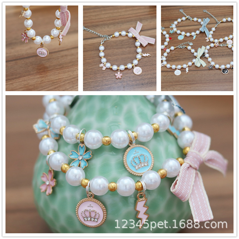 时尚宠物项链猫咪珍珠项圈配饰挂饰 宠物猫泰迪项圈珍珠饰品颈圈