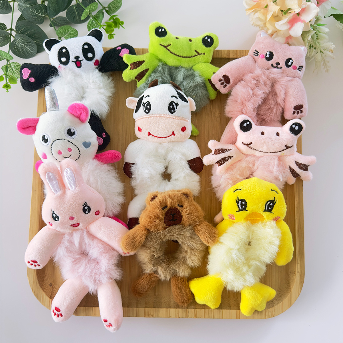 Cincin rambut kodok kartun, hiasan rambut lucu musim gugur dan musim dingin, seri kartun rambut poni elastis