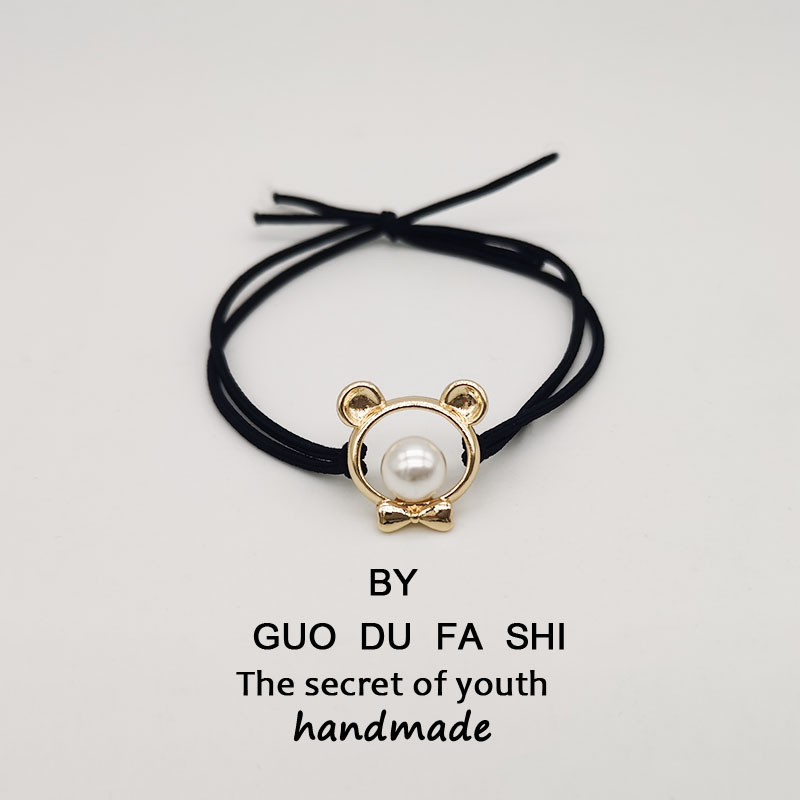 Cincin rambut beruang, gaya Korea paduan berongga beruang dengan pita karet mutiara gaya channel penutup kulit lucu tali rambut ekor kuda tali rambut