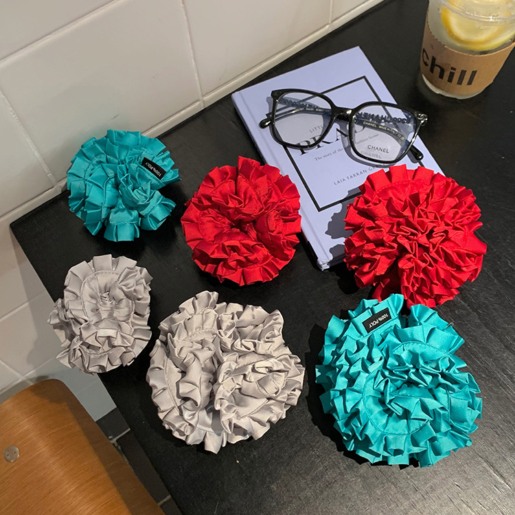 Cincin Rambut Bola Bunga Model Sama MONA Gaya Korea Aksesori Rambut Kepala Bakso Lipat Usus Besar Warna Satin Warna Solid Model Prancis