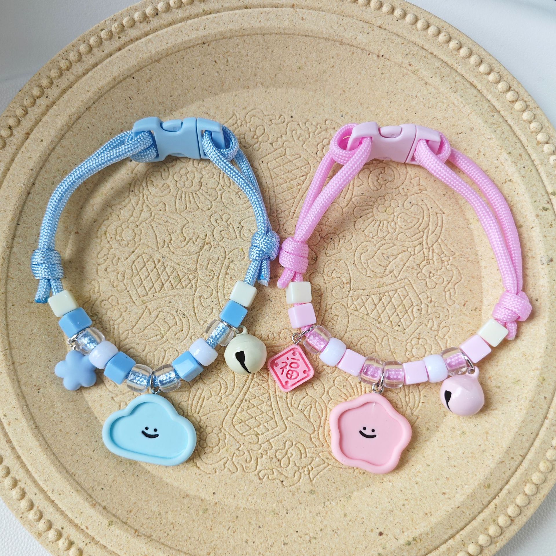 Kerah Anjing Kucing Hewan Peliharaan Kalung Wajah Tersenyum Hati yang Dapat Disesuaikan Segar Musim Panas Warna Kontras Kalung Teddy Perak