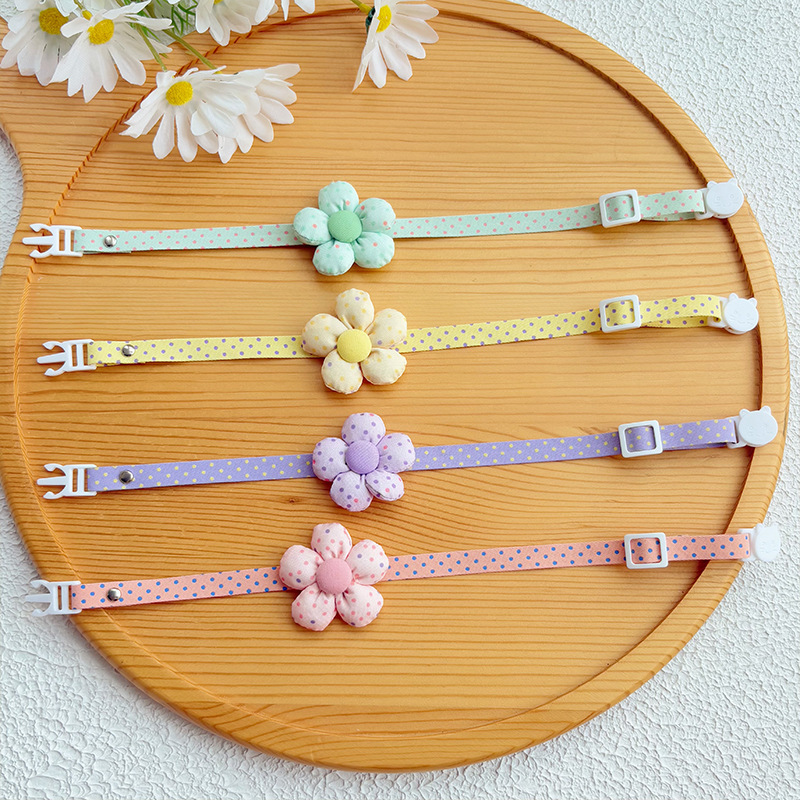 25 Model Musim Panas Kerah Hewan Peliharaan Kucing Hiasan Gantung Leher Bunga Cincin Leher Anjing Tiga Dimensi Polka Dot Lucu Warna Merah Muda Diam