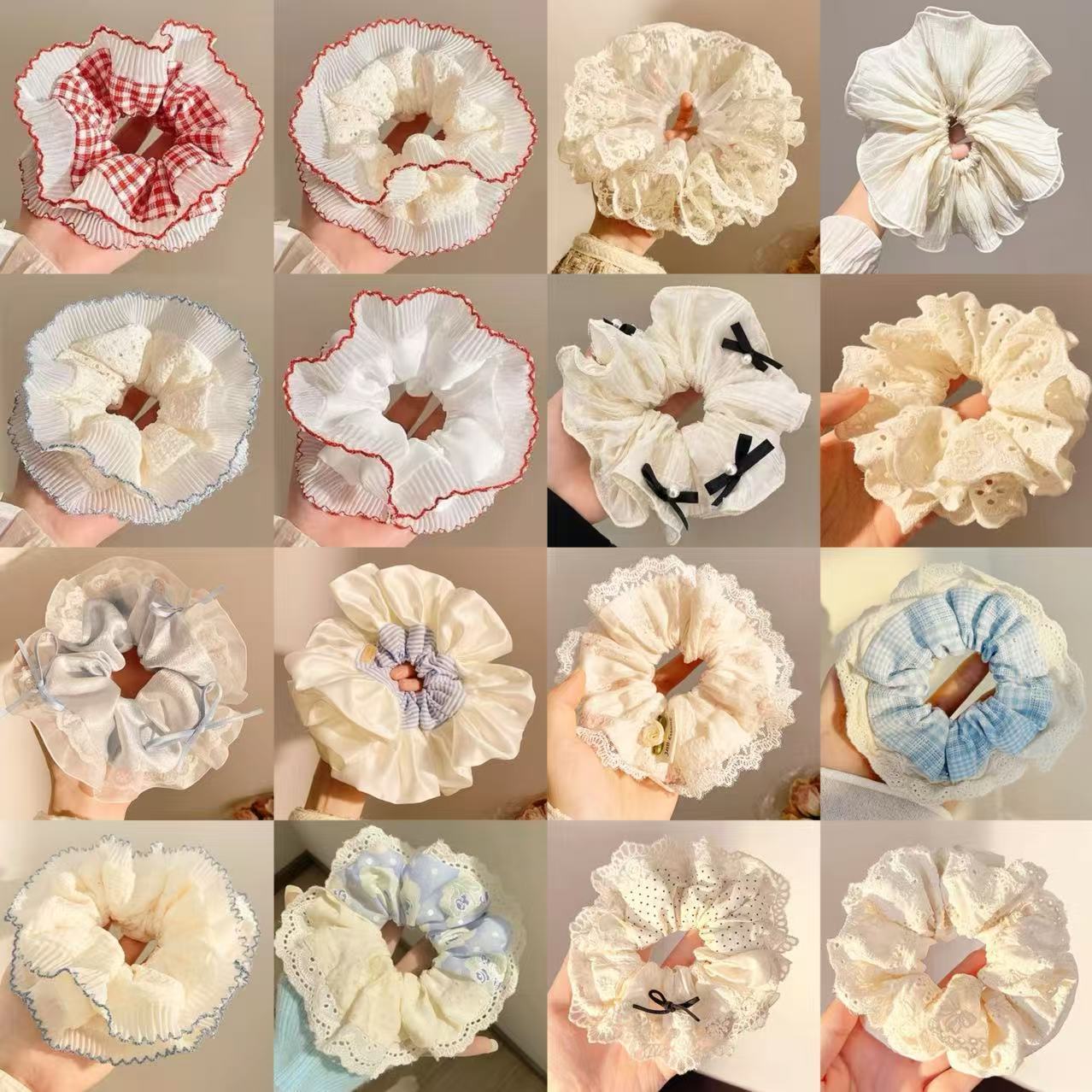 Ikat Rambut Renda Renda Lipit Renda Buatan Tangan Desain Niche Gaya Korea Model Baru Awal Musim Semi Aksesori Rambut Tali Rambut Lingkaran Usus Besar Dua Lapis