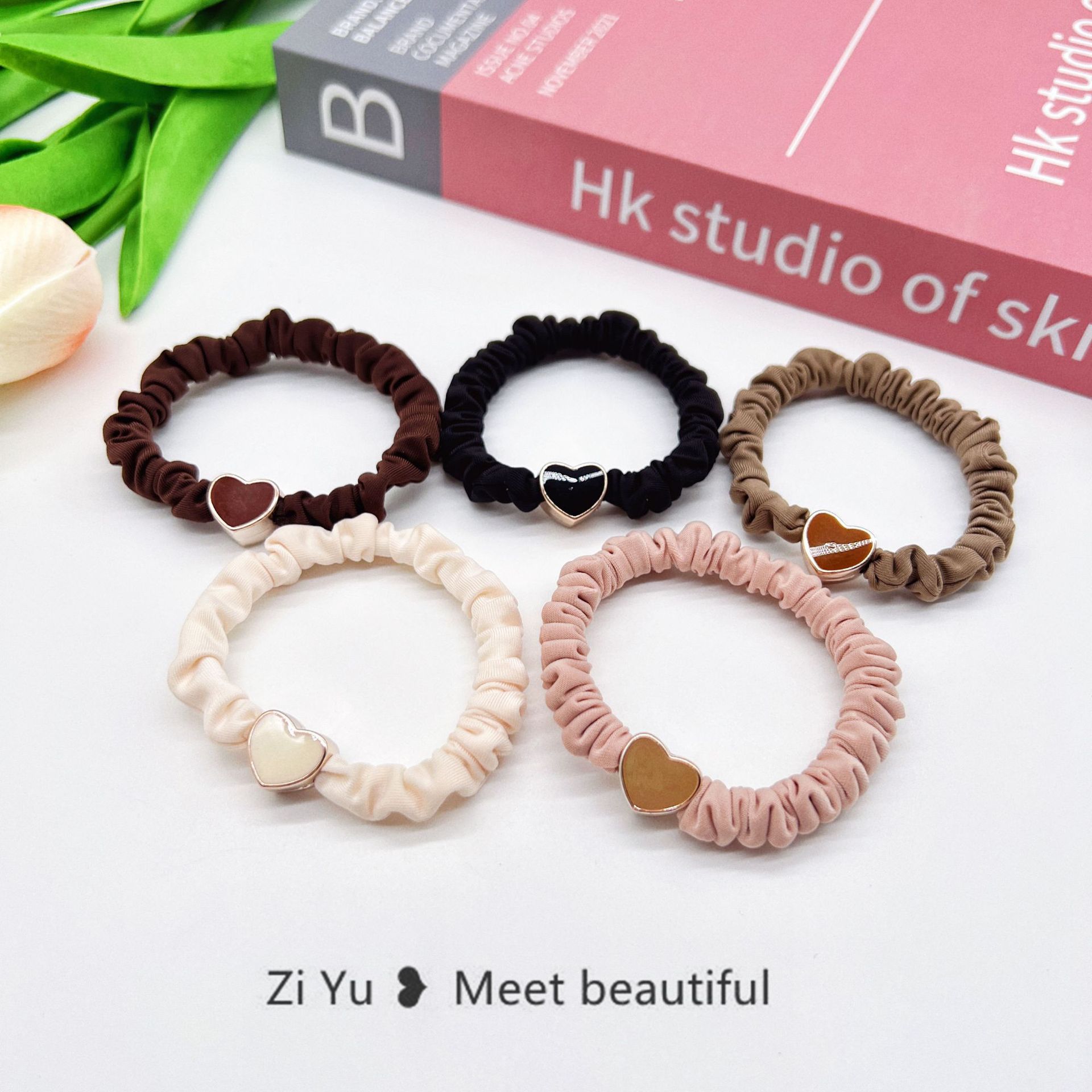 Bertekstur lipit usus kecil ikat rambut geometris persegi hati manik-manik tali rambut hitam dasar gelang karet Korea wanita baru