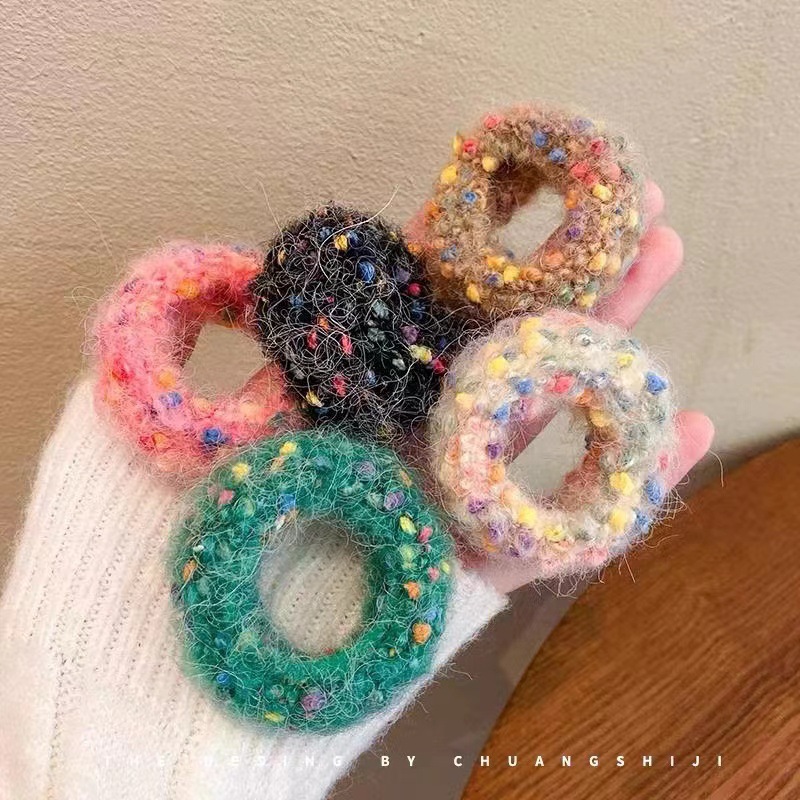 Ikat rambut handuk donat imut musim gugur dan musim dingin, ikat rambut wanita sangat elastis tidak merusak rambut ekor kuda tali bola kepala karet