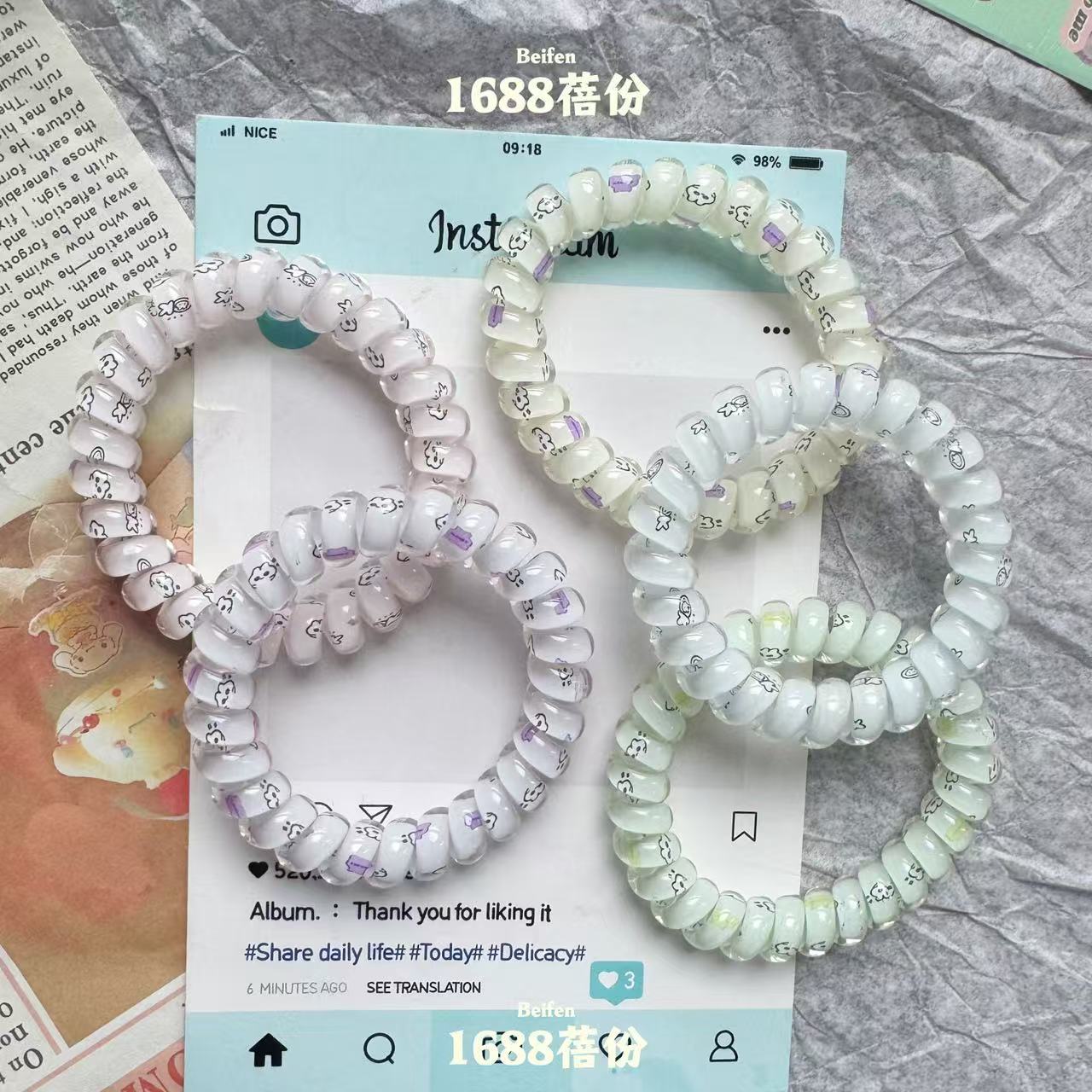 Cincin Rambut Kabel Telepon Beruang Kecil Motif Kartun Model Musim Semi Tali Rambut Ekor Kuda Gadis Lembut Sederhana Aksesori Rambut Tanpa Bekas Karet Gelang