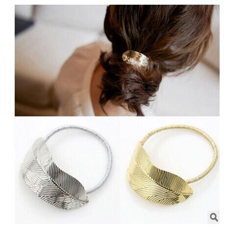 Cross-border perhiasan gaya Korea dan Amerika cincin logam berbentuk bulan sabit sederhana mengkilap lingkaran lingkaran ekor kuda gesper cincin rambut wanita grosir
