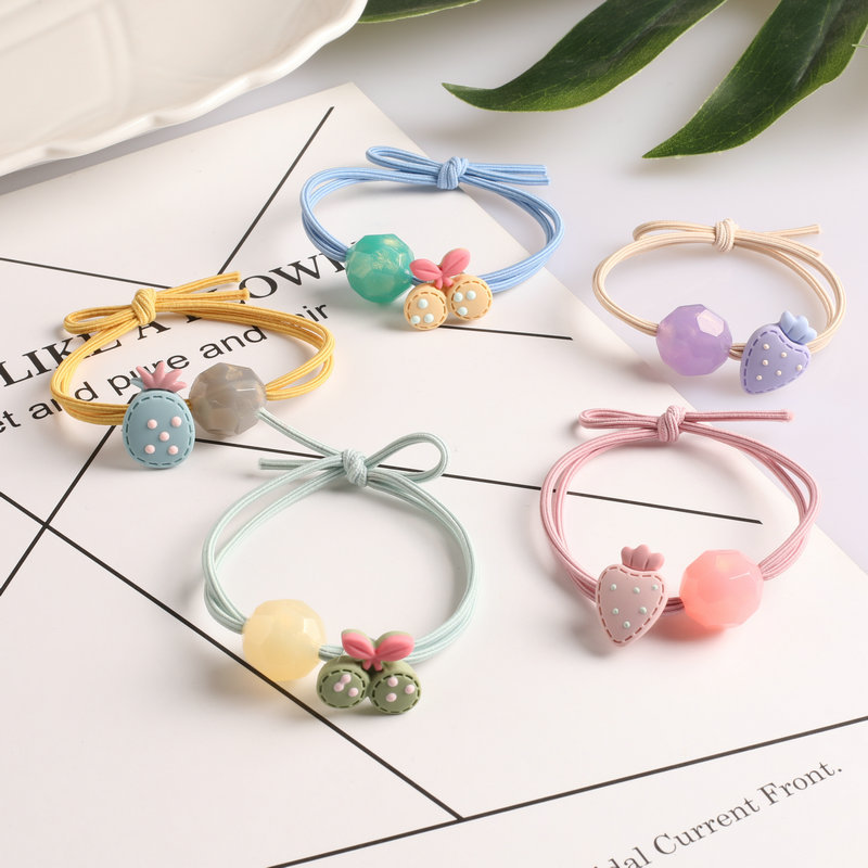 Tali rambut buah jeli segar, ikat rambut korea lucu anak-anak karet gelang stroberi nanas tali rambut ceri