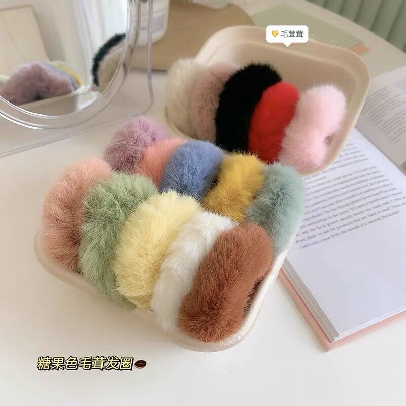萌系柔软毛绒发圈秋冬款毛毛扎马尾丸子头百搭头饰简约网红女发饰