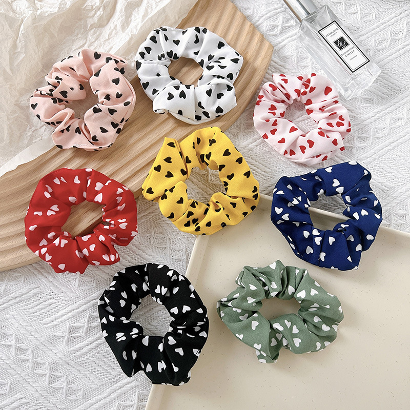 Ikat Rambut Usus Kecil Cinta Gaya Korea Tali Rambut Elegan Gadis Tali Rambut Ekor Kuda Lucu Aksesori Rambut Seni Kain Karet Gelang Elastis Tinggi
