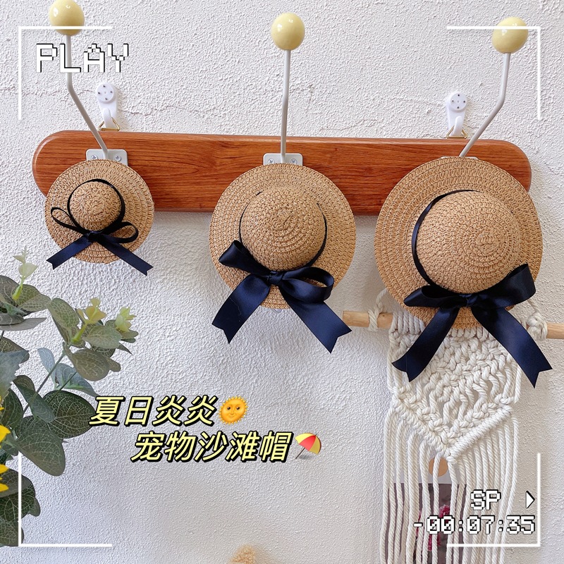Topi jerami rotan musim panas hewan peliharaan topi pantai pita buatan tangan anjing kucing anjing besar dan sedang dapat memakai grosir pabrik