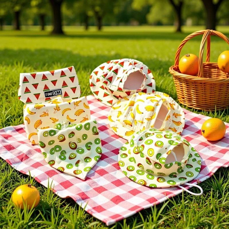 Handuk Segitiga Hewan Peliharaan Dua Sisi Handuk Air Mulut Anjing Dua Sisi Katun Murni Model Kecil dan Menengah Syal Celemek Kucing Bersablon Buah