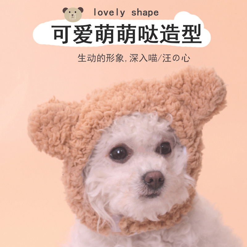 Anjing kecil universal kucing dan anjing tutup kepala hewan peliharaan kartun beruang bulu Polar cocok untuk musim dingin hangat pakaian pabrik baru