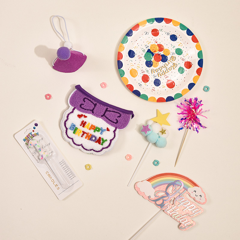 Set Ulang Tahun Hewan Peliharaan Imut Model Baru Peralatan Hewan Peliharaan Model Populer Handuk Air Mulut Celemek Anjing Topi Kecil Leher Kucing Piring Makan