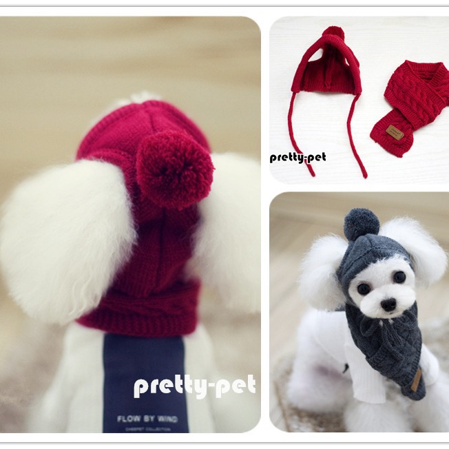 Topi wol kecil dekorasi Natal, topi anjing peliharaan besar, syal anjing, topi syal kucing lucu