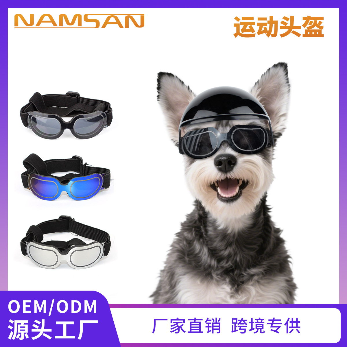 Aksesoris Hewan Peliharaan Kacamata Anjing Helm Sepeda Motor Anjing Olahraga Luar Ruangan Kacamata Pelindung Terik Matahari Hiasan Kepala Dengan Helm Anjing