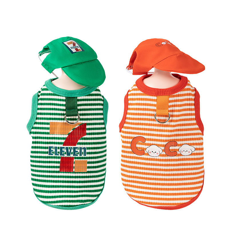 Pakaian Anjing Kucing Model Musim Semi dan Musim Gugur Pakaian Tank Top Rajutan Garis-Garis Set Topi Boneka Kain Teddy Bisa Traksi Pakaian Hewan Peliharaan