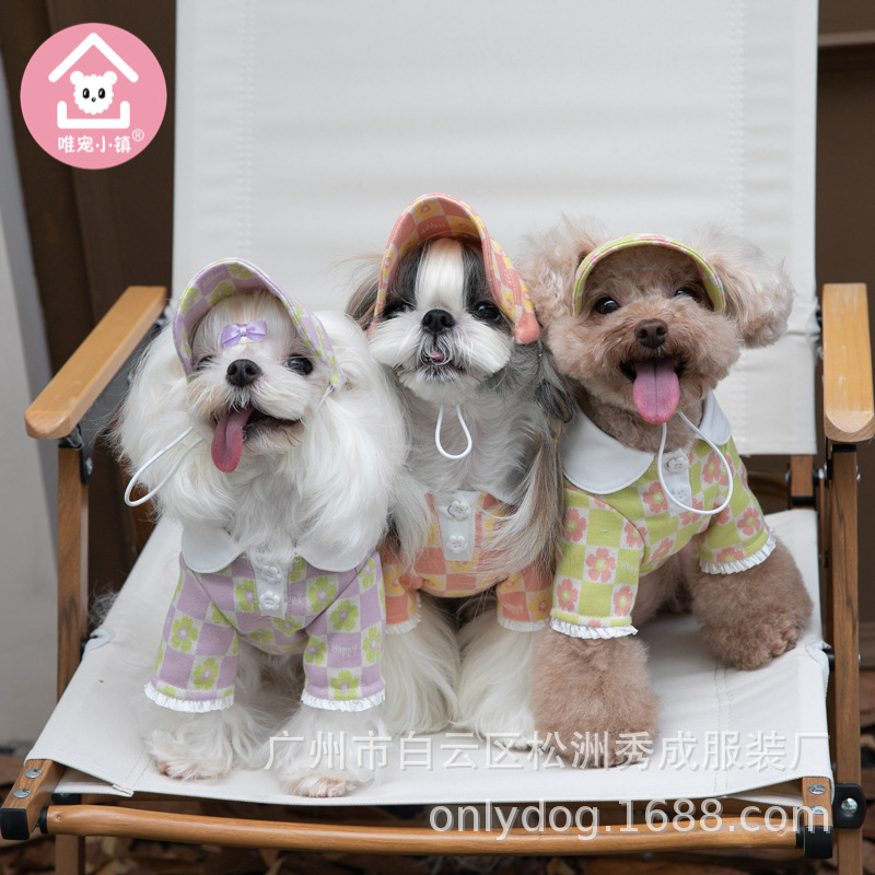 Setelan Musim Panas Tali Traction Dada Hewan Peliharaan Pakaian Anjing Kucing Kecil Topi Pelindung Terik Matahari Saat Keluar Rumah