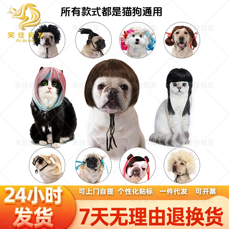 Wig Hewan Peliharaan Wig Anjing Perlengkapan Hewan Peliharaan Lintas Batas Rambut Hewan Peliharaan Rambut Keriting Rambut Lurus Wig Kucing Halloween