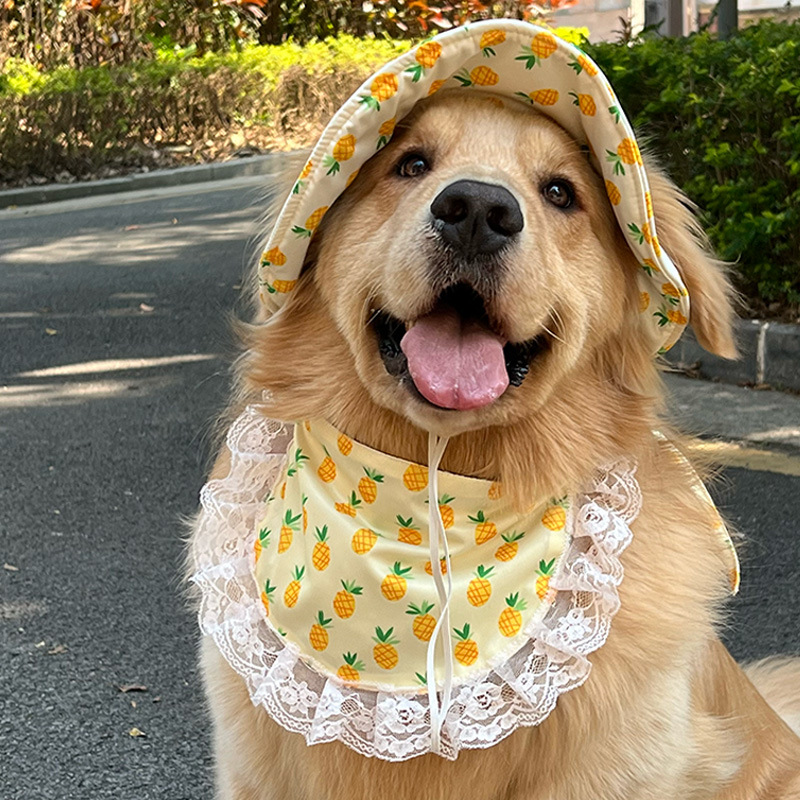 Set Topi Baret Anak Anjing Kucing Tali Pita Kupu-Kupu Renda Renda Beruang Kecil Kelinci Motif Koboi Kotak-Kotak Kartun Hewan Peliharaan
