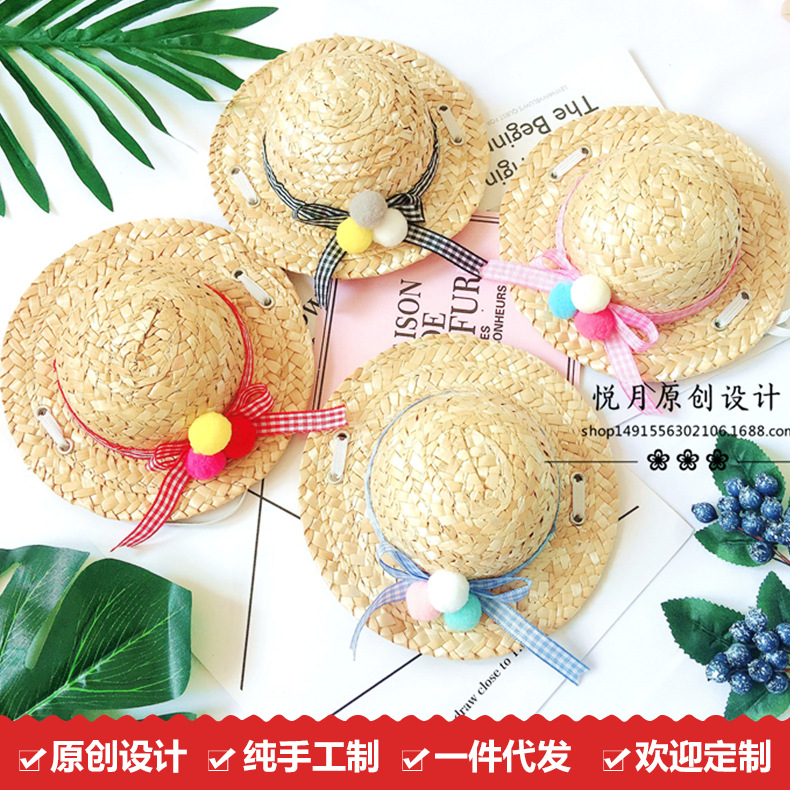 Teddy Bear topi dekoratif anjing, mainan persediaan hewan peliharaan topi jerami anjing seri cos pakaian
