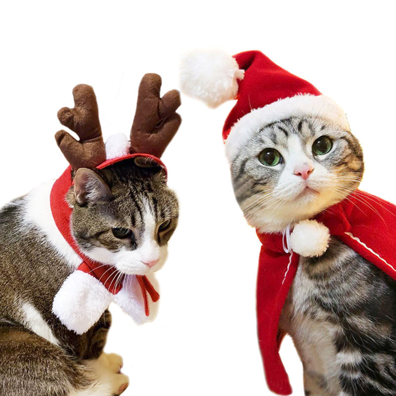 Setelan Natal syal kepala hewan peliharaan mantel Natal kucing syal anak anjing perhiasan liburan