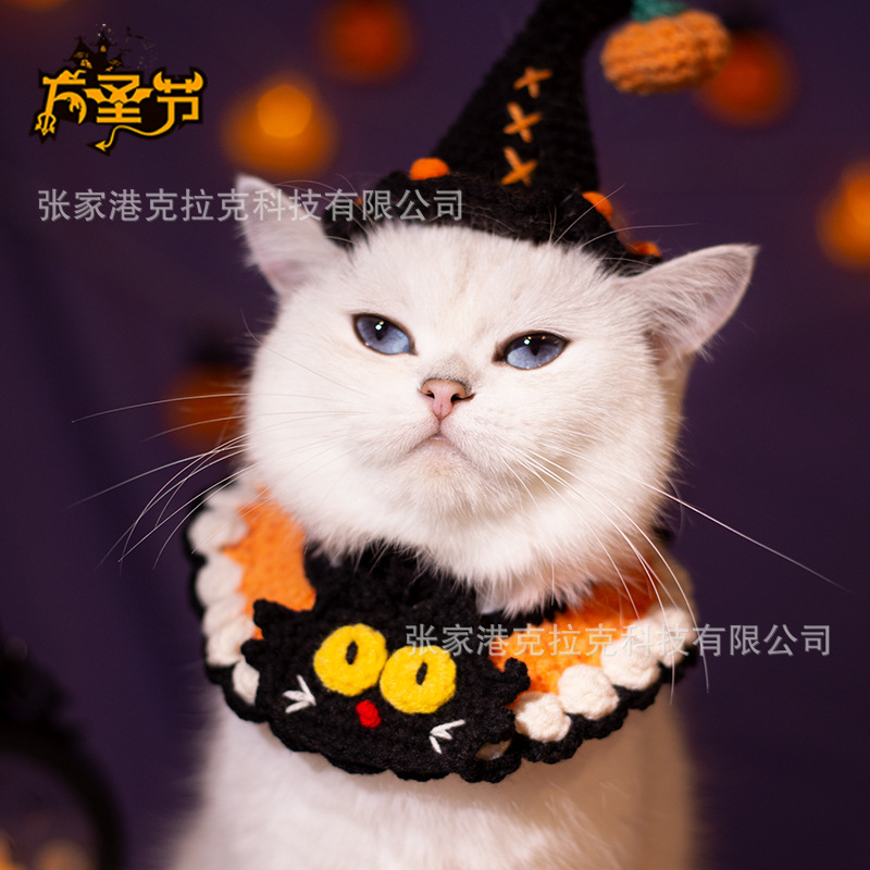 Amazon syal hewan peliharaan Halloween kucing anjing handuk air liur kerah dekoratif festival hantu syal wol tenunan tangan