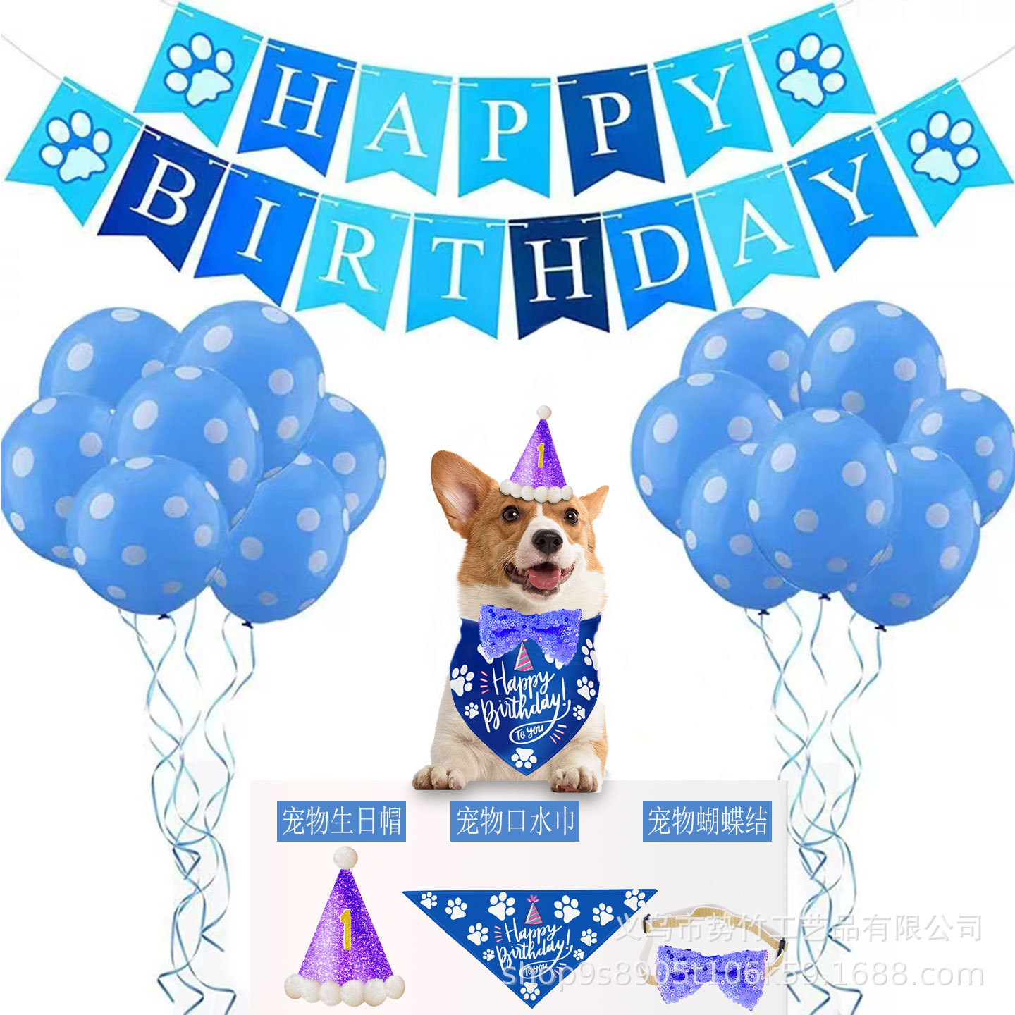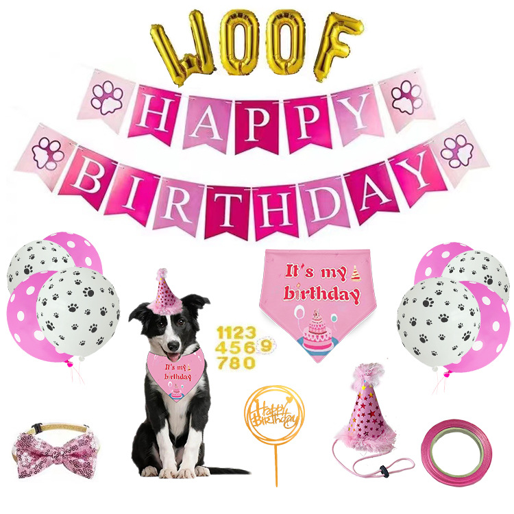 Amazon Pesta Ulang Tahun anjing hewan peliharaan baru spanduk tarik topi ulang tahun dekorasi pesta setelan ulang tahun hewan peliharaan
