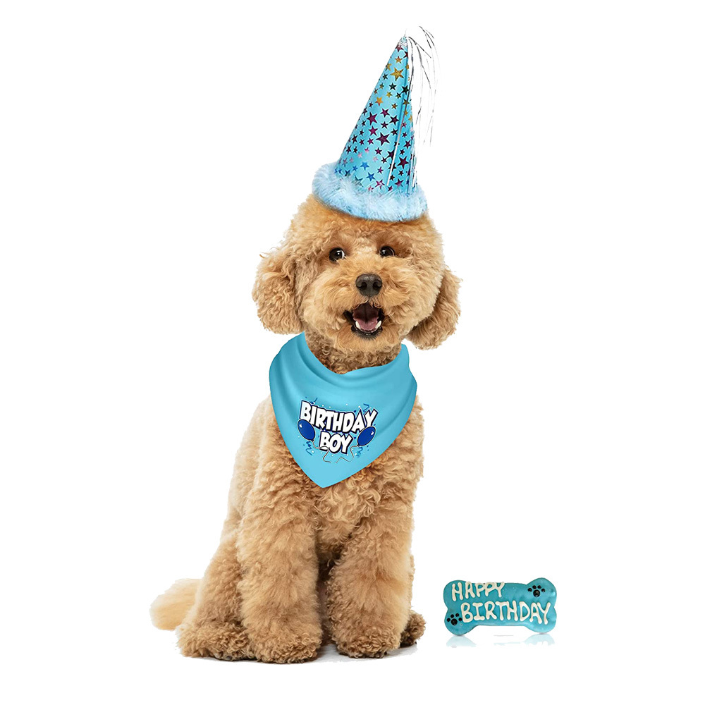 Setelan ulang tahun hewan peliharaan lintas batas syal Ulang Tahun Anjing handuk segitiga topi ulang tahun hewan peliharaan pesta ulang tahun mainan tulang