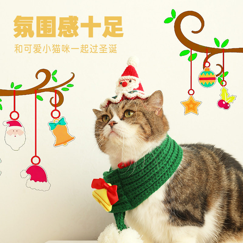 Jubah kucing pakaian natal lintas batas anjing kucing Inggris pendek lonceng Natal syal topi jubah hiasan kepala