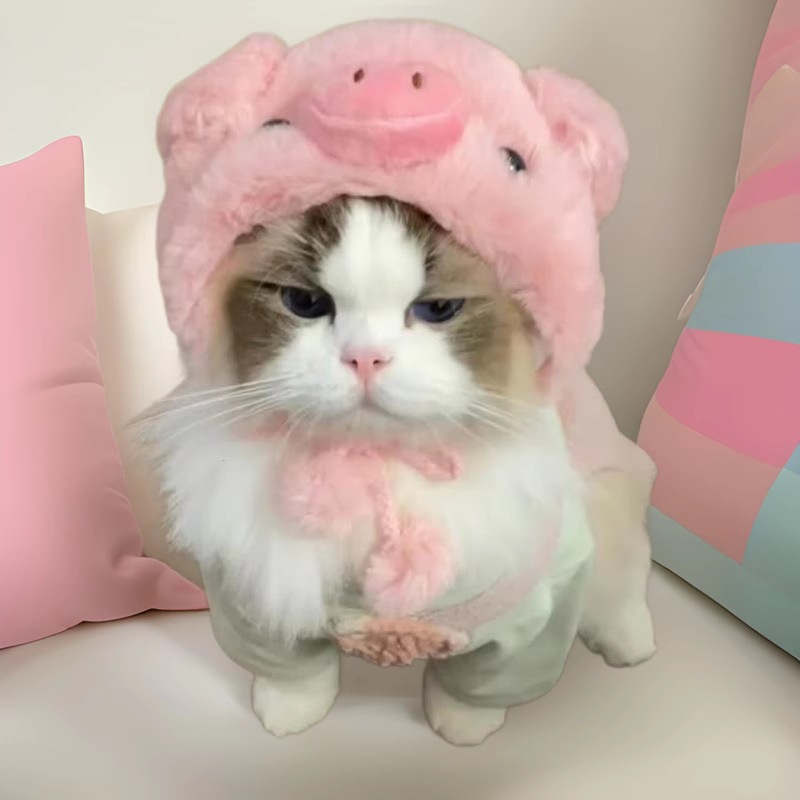 Sarung Kepala Babi Hewan Peliharaan Marzis Yorkshire Bibear Kucing Topi Dekorasi Pakaian Variasi Musim Gugur dan Musim Dingin Hangat Anjing