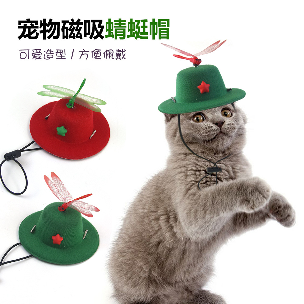 Border Batas Kreatif Hewan Peliharaan Magnetik Capung Topi Capung Aksesoris Hewan Peliharaan Kucing Anjing Berpakaian Topi Capung Produk Hewan Peliharaan