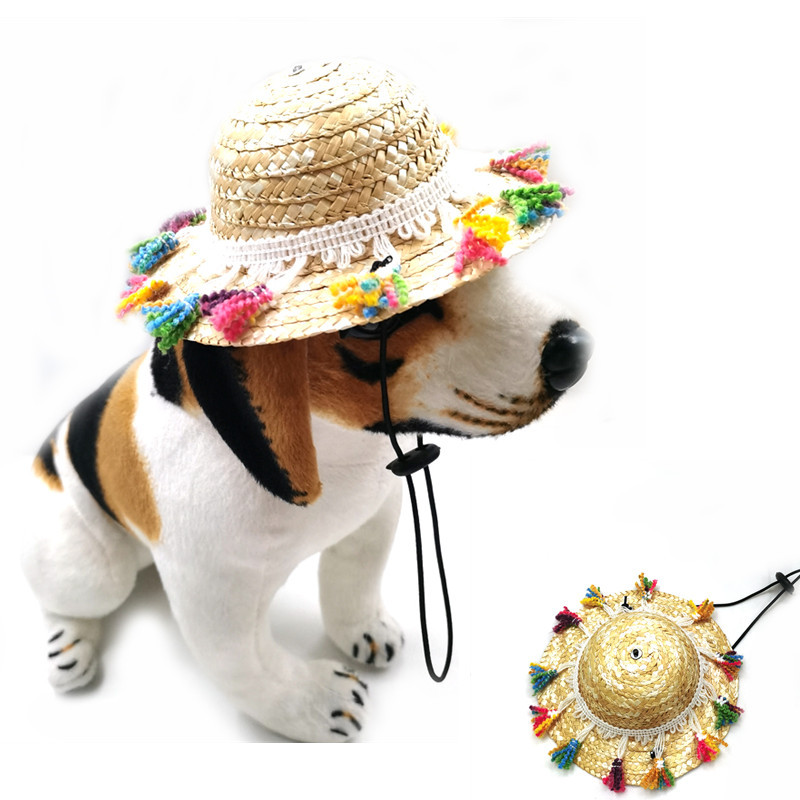 Ebay topi jerami rumbai hewan peliharaan, penjualan laris kepribadian topi lucu topi kucing anjing jerami hewan peliharaan dalam stok