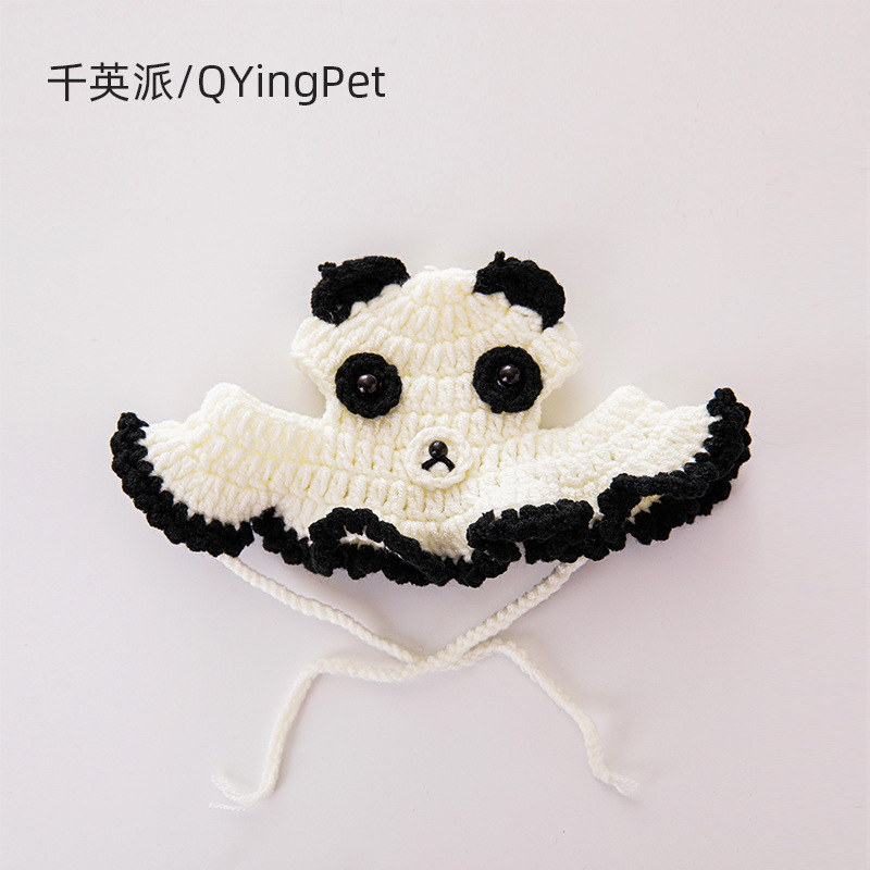 Topi rajut kucing buatan tangan, lucu crossdressing perlengkapan hewan peliharaan panda wol dekorasi topi anjing penutup kepala pabrik