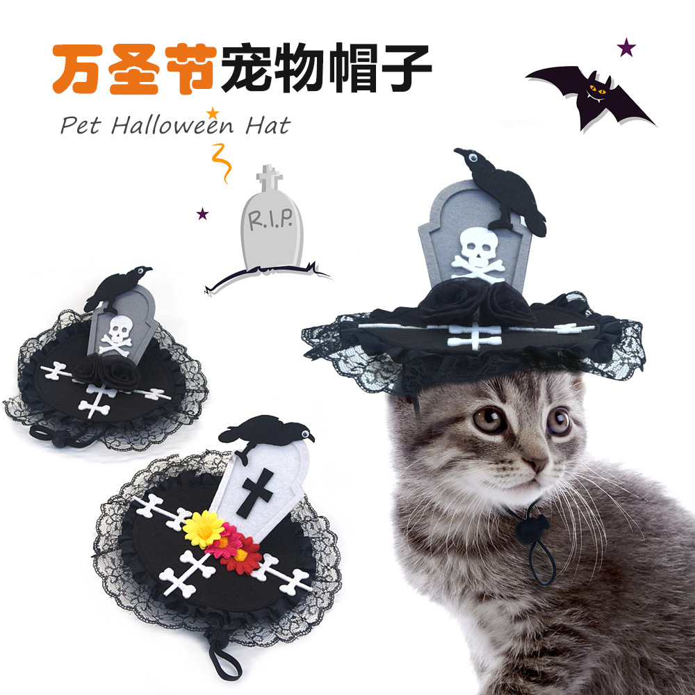 Topi hewan peliharaan Halloween, baju perhiasan hewan peliharaan kelelawar tombstone baru lintas batas