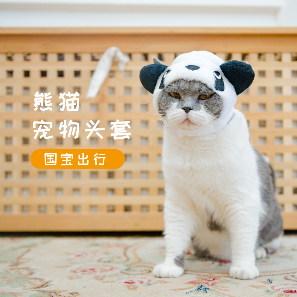 Topi kucing peliharaan, hiasan kepala anjing panda, perlengkapan anak kucing lucu