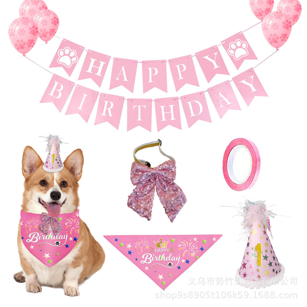 Stok tersedia perlengkapan pesta ulang tahun anjing topi ulang tahun hewan peliharaan bendera spanduk dasi kupu-kupu setelan ulang tahun anjing grosir
