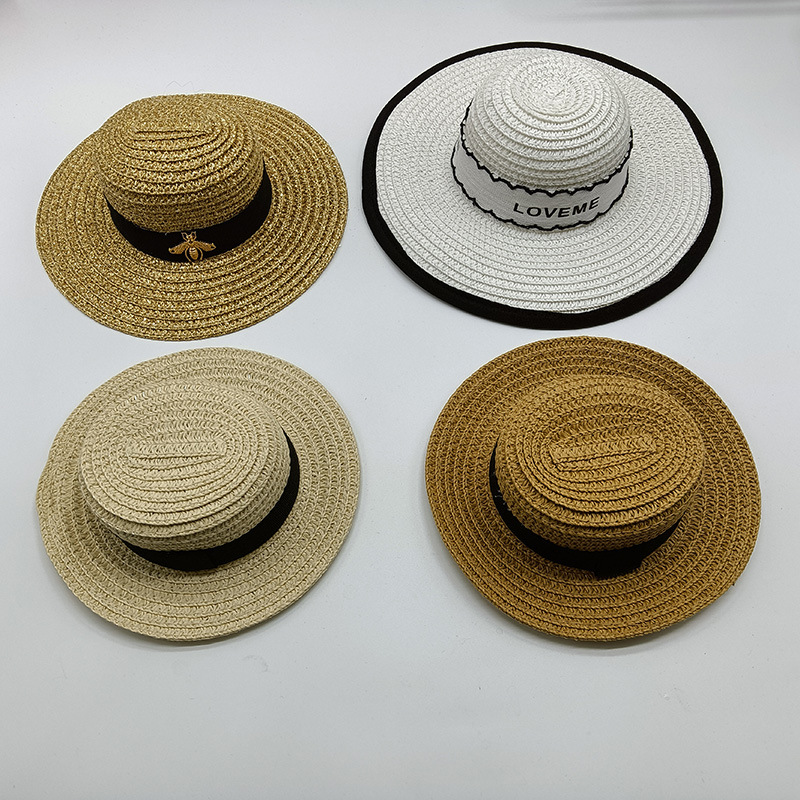 Topi bayi katun topi jerami mainan boneka baru pabrik topi hewan peliharaan mini pinggiran besar topi boneka topi matahari