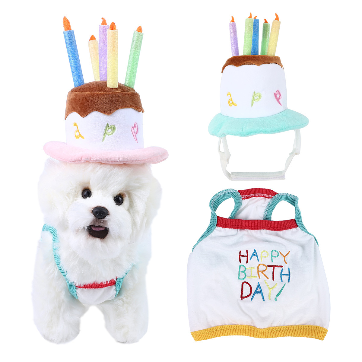 Cross-border topi ulang tahun hewan peliharaan, dekorasi pesta ulang tahun anjing pakaian ulang tahun anjing