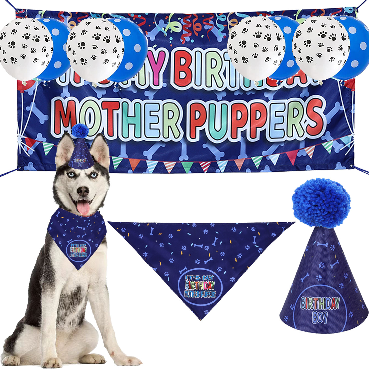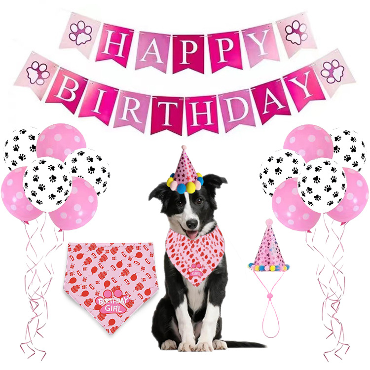 Amazon baru dekorasi pesta hewan peliharaan anjing spanduk ulang tahun balon dekorasi ulang tahun segitiga handuk topi ulang tahun