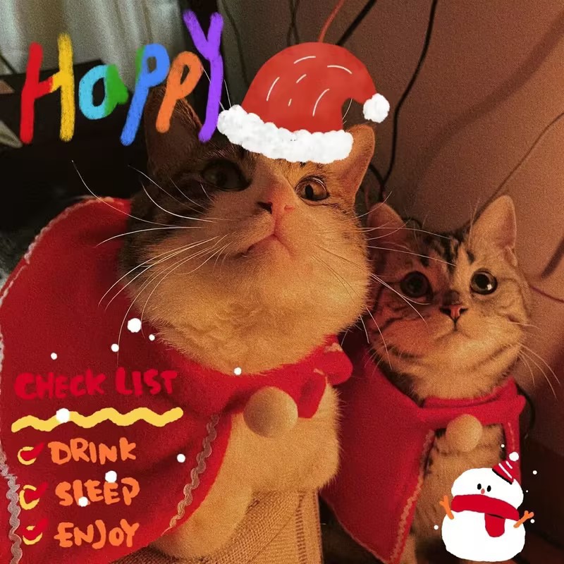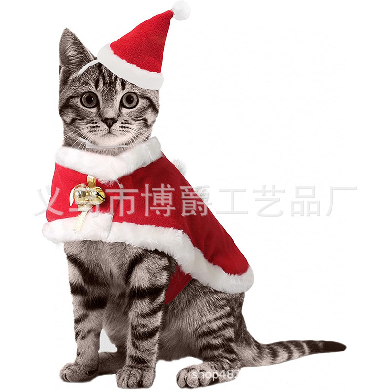 Baju Natal kucing jubah tudung berkendara merah kecil dekorasi anak anjing topi Tahun Baru kucing peliharaan hangat musim dingin