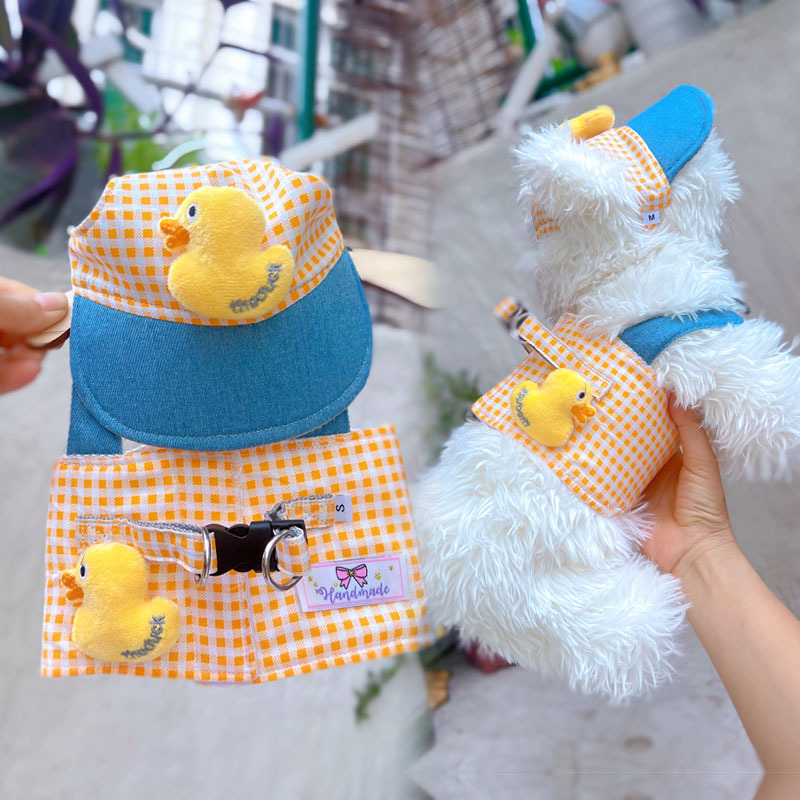 Setelan Musim Panas Tali Traction Dada Hewan Peliharaan Pakaian Anjing Kucing Kecil Topi Pelindung Terik Matahari Saat Keluar Rumah