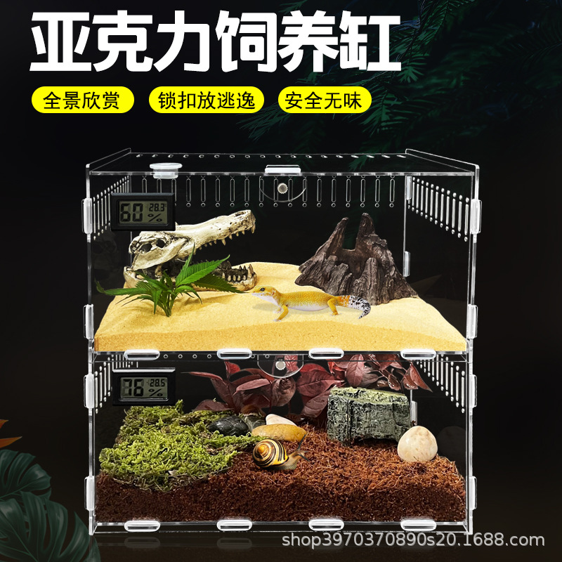 Kotak makan hewan peliharaan kombinasi akrilik transparan kotak makan perayap akrilik grosir pabrik kotak makan hewan peliharaan