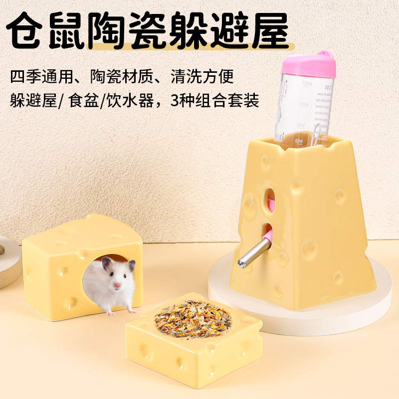 Keju hamster botol air minum braket keramik mangkuk hamster pengumpan hewan peliharaan kecil pendingin musim panas tempat berlindung