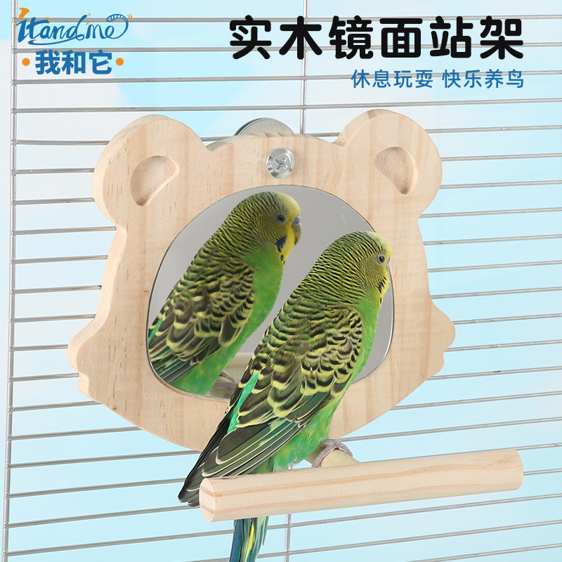 Parrot Cermin Kayu Solid Rak Berdiri Tiang Stasiun Burung Phoenix Xuanfeng Fun Mainan Burung Kayu Hewan Peliharaan dan Peralatan Makan Bermain