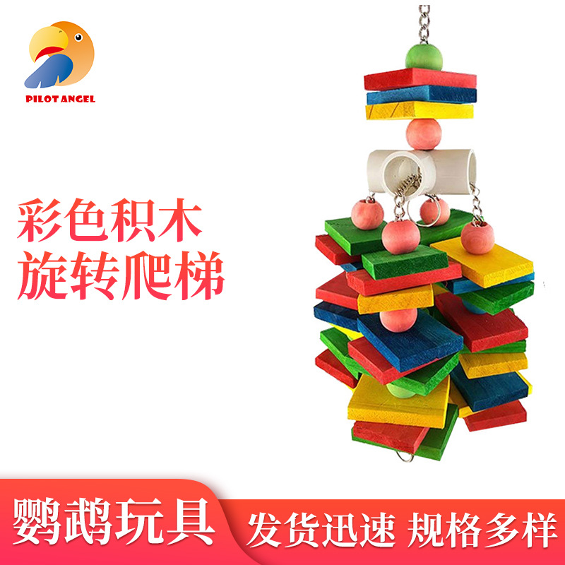 Mainan burung beo blok bangunan warna-warni, mainan kerlip tangga berputar untuk memanjat tangga burung peliharaan