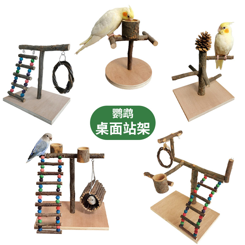 Tongkat mainan burung bayan kayu padat berdiri latihan burung bayan persediaan meja latihan berdiri tongkat burung bayan interaktif taman bermain